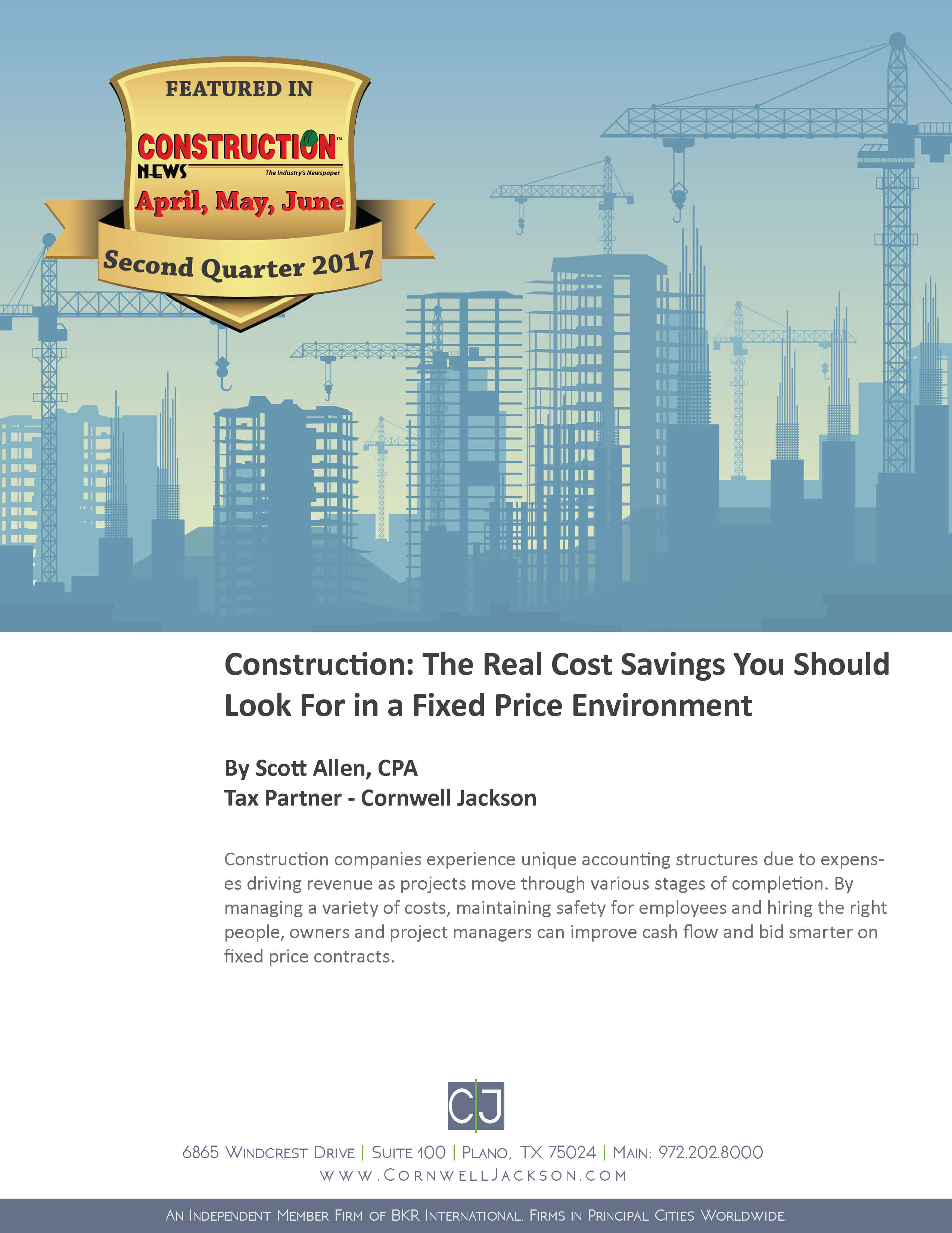 Cornwell Jackson’s Tax team can provide guidance on reigning in costs by reviewing your profit and loss statements, work in process and general accounting ledgers. Contact our team with your questions.